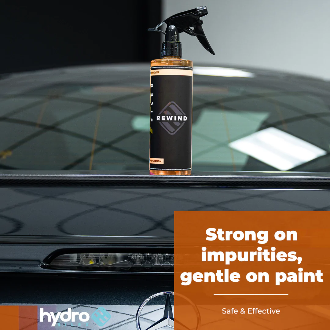 HydroSilex Rewind is a wax and grease remover ideal to use prior the application of any HydroSilex ceramic coatings. For the ceramic coating to bond properly, the surface needs to be clean from any wax or grease residue. After washing the car, use Rewind to deeply strip the surface from any wax or grease. The surface is then perfectly prepared for a HydoSilex coating application.
