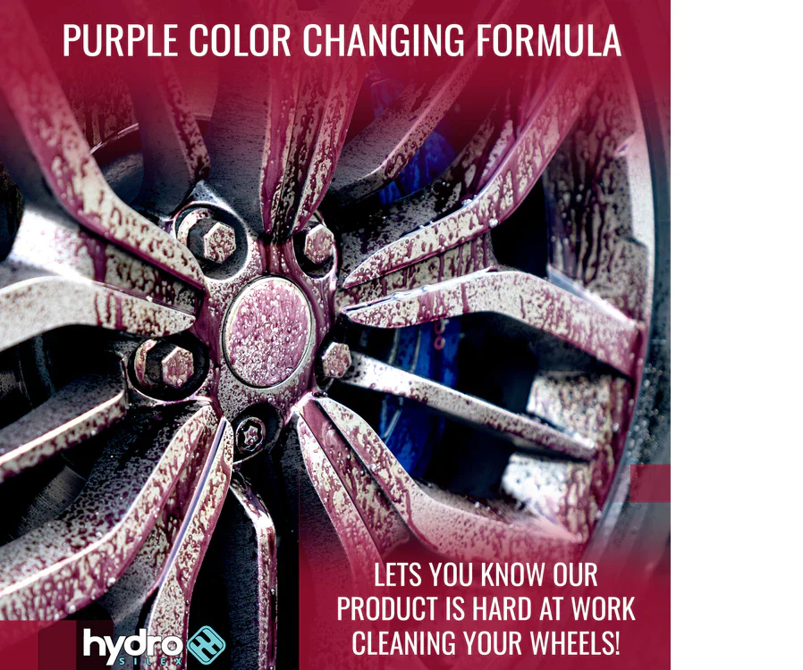 HydroSilex Wheel Cleaner is an advanced formula created to be effective and safe for all types of wheels focused on removing stubborn brake contamination such as metallic dust, grime, iron particles, and heavy buildup on wheels. The purple color change lets you know the product is hard at work cleaning your wheels. Simply spray it on, let it sit for about 2-3 minutes, agitate the surface and rinse.